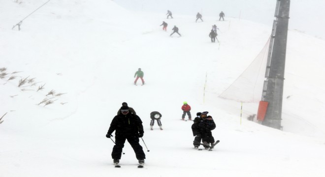 Erzurum’da hafta sonu tatilini fırsat bilen yerli ve yabancı turistler, Palandöken Kayak Merkezi'nde fırtına altında kayak yapmanın tadını çıkardı.