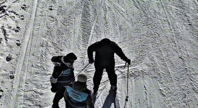 Sarıkamış’ta kayak yaparken düşen ve ayağında sorun olan kadının imdadına ...
