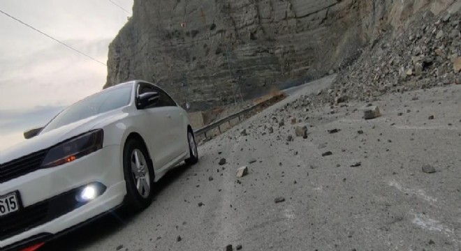 Erzurum’un Uzundere ilçesinde bulunan Pirinkayalar geçidi mevkiinde yıkılan kayalar için 2022 yılının başlarında önlem amaçlı yapılan çelik teller kayaların yıkılması sonucu kırılıp yola düştü.