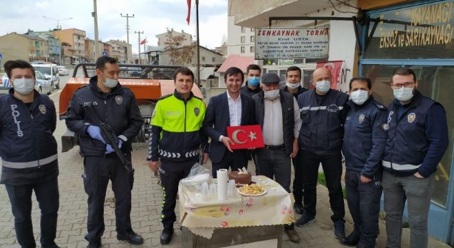 Aşkale'de esnaflık yapan Erol Özkaynak polis haftası münasebetiyle ilçedeki polislere sürpriz yaptı.