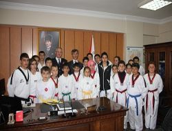 İlçe Emniyet Müdürü Cenk Bozkurt’u makamında ziyaret eden sporcular ve antrenörleri Sıtkı Toksoy, polise yaptıkları fedakar hizmetlerinden dolayı teşekkür ettiler.