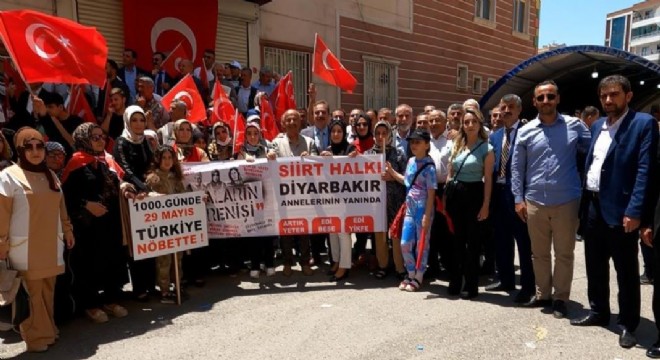 Siirt Belediyesi öncülüğünde Şehit ve Gazi yakınları ile Sivil Toplum Örgütleri (STK) temsilci ve üyeleri Diyarbakır annelerinin onurlu ve şanlı direnişine destek olmak amacıyla Diyarbakır'a geldi. Ellerinde çocuklarının fotoğrafıyla bekleyişini sürdüren aileleri ziyaret eden Siirt STK temsilcileri oturma eylemi yapan anne ve babalarla görüştü. Aileler de ziyaret sırasında terör örgütü PKK ile HDP'ye tepkilerini dile getirdi.