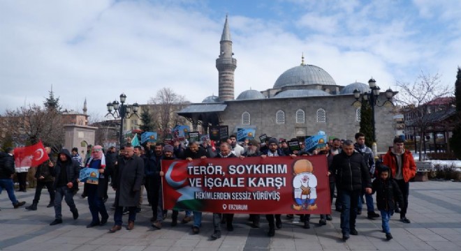 İsrail'in Gazze'ye yönelik saldırılarını protesto etmek amacıyla Erzurum'da görevli sağlık çalışanları, sessiz yürüyüşte bir kez daha bir araya geldi.