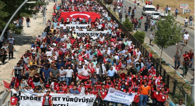 Tunceli’de düzenlenen “Teröre Lanet Yürüyüşü” merkez Atatürk Mahallesi Sosyal Güvenlik Kurumu binası önünde başladı. Vali Tuncay Sonel, Jandarma Bölge Komutanı Tuğgeneral Turgay Aras, İl Emniyet Müdürü Doğu Ateş, İl Jandarma Komutanı Albay Sinan Şen, kurum amirleri, siyasi parti ve dernek temsilcileri ile vatandaşların katıldığı yürüyüş öncesinde İl Müftüsü Aşır Durgun şehitler için dua okudu.