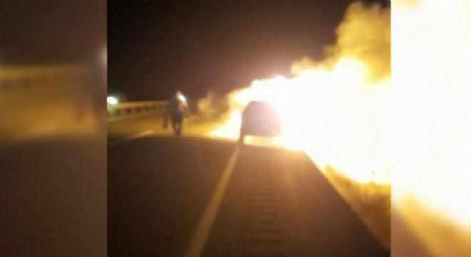 Olay, gece saatlerinde Erzincan - Erzurum kara yolu Bayırbağ mevkiinde meydana geldi. Alınan bilgiye göre, çocuğuyla birlikte 24 AAT 485 plakalı otomobiliyle seyir halinde olan sürücü bir anda aracın ön kısmından dumanlar yükseldiğini fark etti. Aracı yolun kenarına çeken sürücü çocuğuyla birlikte otomobilden indi. Bu sırada araç motor kısmından alev almaya başladı. Kısa sürede alev alev yanan otomobile olay yerine gelen itfaiye ekipleri müdahale ederek söndürdü. Ön kısmı tamamen yanan otomobil kullanılmaz hale geldi.