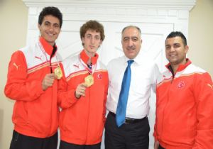 ERZURUM (İHA) - İzmir’de yapılan Kulüpler Taekwondo Şampiyonasında birinci olan Ömer Faruk Şimşek ile üçüncü olan Okan Şimşek’i, Erzurum Gençlik Hizmetleri ve Spor İl Müdürü Süleyman Arısoy kutladı.