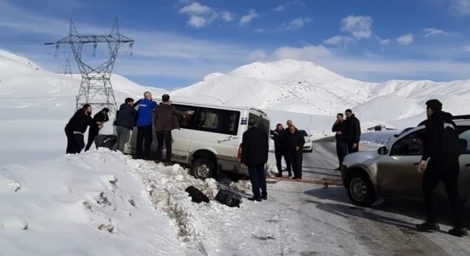 Öğrencilerin bulunduğu minibüs buzlanma nedeniyle kayıp kara saplandı. Minibüs, olay yerinden geçen sporcuların müdahalesi ile kurtarıldı.