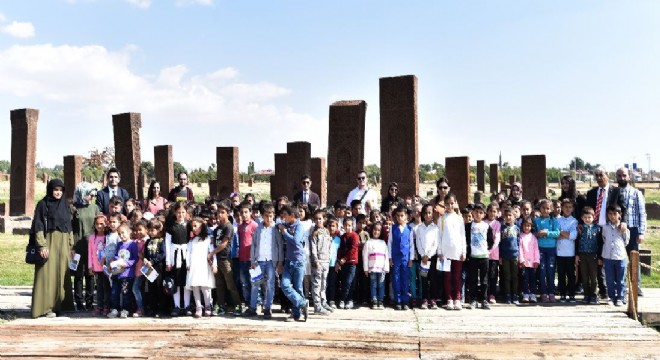 “Anadolu’nun Kapısı, Türkiye’nin Tapusu Ahlat” projesi kapsamında köylerde eğitim gören öğrenciler ilçenin tarihi mekanlarını gezerek Selçuklu Meydan Mezarlığında ders işlediler.