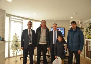 Erzurum Tenis İhtisas Spor Kulübü Başkanı Hasan Polat ile birlikte kupa sevinicini Erzurum Gençlik Hizmetleri ve Spor İl Müdürü Fuat Taşkesenligil ile Spor Şube Müdürü Güngör Şenses’le paylaşan minik sporcu Muhammet Tunahan Kurt, hedeflerinin büyük olduğunu söyledi. Teniste milli takıma kadar yükselmeyi hedefleyen minik tenisçi, Erzurum Gençlik Hizmetleri ve Spor İl Müdürü Fuat Taşkesenligil’e desteklerinden dolayı teşekkür etti. Taşkesenligil de, Tenis İl Temsilcisi Alpaslan Tozoğlu başta olmak üzere teniste önemli çalışmaların yapıldığına işaret ederek, kulüp başkanı Hasan Polat ve sporcusunu başarıdan dolayı kutladı. Taşkesenligil, Kış Kupası Tenis Turnuvasında birinci olan Muhammet Tunahan Kurt’a t-short hediye etti. Ziyarette Erzurum GHSİM Spor Şube Müdürlüğü görevine atanan Güngör Şenses de hazır bulundu