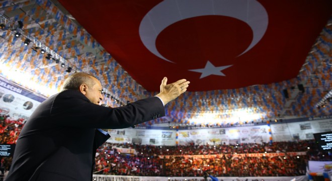 Spor salonunu dolduran binlerce vatandaşa hitap eden Erdoğan, “Genel başkan olduğumuzda bir metal yorgunluğu olduğundan bahsetmiştim. Diriliş hareketini Afrin ile başlattık. Devamına var mıyız? Yola çıkarken dedik? Uzun ince bir yoldayız, gidiyoruz gündüz gece. Gideceğiz gündüz gece. Durmak yok. Bizden öncelikler hep laf laf laf yaptı. Biz ise iş iş iş yaptık” ifadelerini kullandı.