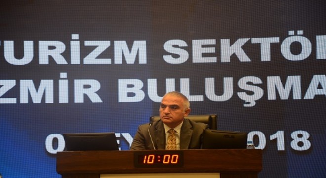 İzmir Ticaret Odası’nda (İZTO) gerçekleşen ‘Turizm Sektörü İzmir Buluşması’na Kültür ve Turizm Bakanı Mehmet Nuri Ersoy’un yanı sıra İzmir Valisi Erol Ayyıldız, İzmir Büyükşehir Belediye Başkanı Aziz Kocaoğlu, İzmir Ticaret Odası Başkanı Mahmut Özgener ve turizm sektörü temsilcileri katıldı. Konuşmasında İzmir’in turizmde önü en açık şehir olduğunun altını çizen Bakan Ersoy, doğru planlamayla 5 yıl içinde turist sayısını iki katına çıkaracaklarını belirtti. Ersoy, “İzmir’in kurtuluşunun teşvikler olduğunu düşünmüyorum. Turizm sektöründe önü an açık şehirlerin başında İzmir geliyor. Doğru planlamalarla İzmir çok iyi yerlere gelecek. 5 yıl içinde gelen turist sayısını iki katına çıkarmayı hedefliyoruz. Bunu hep beraber gerçekleştireceğiz. Bunu yaparken de teşvikle yapmayacağız. Kurtuluş teşvik değil, doğru planlarla şehri geliştirmektir. Barcelona’da turistler resmen kovuluyor ancak turistler hala oraya gitmeye devam ediyor. Teşvik, orman yangınını musluk suyuyla söndürmeye benziyor. Gecelik 3 dolar teşvikle bir yere varamayız. Bizim algıyı düzeltmemiz lazım” ifadelerini kullandı.