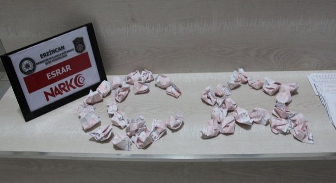 “10 Ağustos 2019 tarihinde ilimize uyuşturucu madde getirileceği bilgisi alınması üzerine başlatılan çalışma kapsamında Erzincan-Erzurum karayolu üzerinde uygulama gerçekleştirilmiştir. Yapılan uygulamada E. A., isimli şahsa ait durdurulan araçta yapılan aramada toplam 2 bin 167 adet reçeteye tabi uyuşturucu madde etkisi yapan sentetik ecza ele geçirilmiştir.