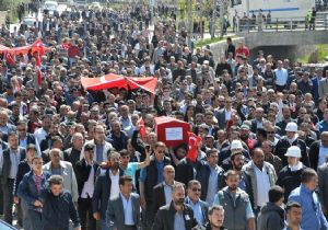 Bu arada Akköprü mezarlığının çevresinde bulunan binalara Türk bayraklarının asıldığı gözlenirken, cenaze töreninde de dev bayraklar açıldı.