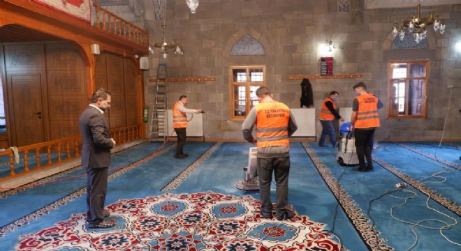 Erzurum'da Yakutiye Belediyesi, yaklaşan Ramazan ayı vesilesiyle tüm camileri temizlik ve hijyen açısından hazır hale getiriyor.