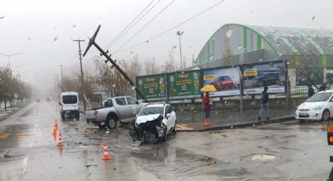 Erzurum’da etkili olan kar yağışının ardından kazalarda beraberinde geldi. Meydana gelen kazada otomobil ve kamyonet kafa kafaya çarpışırken araçlarda ki 2 kişi yaralandı.