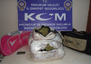 Erzurum Emniyet Müdürlüğü KOM Şube Müdürlüğüne bağlı narkotik ekipleri tarafından Ilıca Uygulama Noktasında yapılan operasyonda; Bingöl istikametinden gelen bir yolcu otobüsünde seyahat eden S.H. isimli şüpheli şahsa ait valiz içerisinde şeffaf jelatine sarılı vaziyette toplam ağırlığı 6 kilo 755 gram uyuşturucu esrar maddesi ele geçirildi.