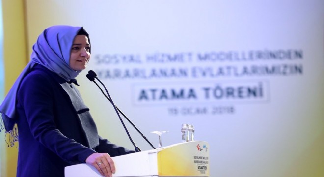 Sosyal Hizmet Modellerinden yararlanan gençlerin atama töreni Aile ve Sosyal Politikalar Bakanı Fatma Betül Sayan Kaya ve Çalışma ve Sosyal Güvenlik Bakanı Jülide Sarıeroğlu'nun katılımlarıyla gerçekleştirildi. Sosyal Hizmet Modellerinden Yararlanan Evlatlarımızın Atama Töreni ile 2 bin 294 kişinin kamu kurum ve kuruluşlarına atamasını gerçekleştirildi. Törende konuşan Bakan Sarıeroğlu, bu alandaki atamanın bakanlık görevi sırasındaki ilk atama olduğuna dikkati çekerek, "Gençlerimizin bu aile hissini yaşamaları Aile ve Sosyal Politikalar Bakanlığının başarısı. Fatma Hanım'ın bu alandaki yoğun çabalarına şahit oldum ve kendisinin bu alana anne hassasiyetiyle yaklaştığını gördüm. İnşallah gelecekle alakalı olarak hizmet modellerimizi daha da geliştirerek, daha farklı çalışmalar da yaparak bugün geldiğimiz bu ileri aşamayı önümüzdeki dönemde Fatma Hanım'ın liderliğinde, Aile Bakanlığındaki bürokrat arkadaşlarımız, genç kardeşlerimizin de görüş ve önerileri doğrultusunda çok daha ileri seviyelere taşıyacaktır. Anayasamızda yer alan sosyal devlet anlayışı son 15 yılda, içinde barındırdığı hususlarla güçlü bir şekilde sahalara, vatandaşlara, topluma yansıdı. AK Parti hükümetleri olarak, Cumhurbaşkanı Recep Tayyip Erdoğan liderliğinde geçmişten itibaren tüm ihtiyaç sahibi, sesini duyuramamış kesimlere el uzatmak için büyük bir çabayla çalıştık Mağdurların, darda, zorda olanların yardımına koşmaya devam edeceğiz. İşte sosyal hizmet modellerinden yararlanan kardeşlerimizin, gençlerimizin ailelerinin yerini tutmasa da devletimizin şefkatli ellerinde olabilecek en iyi şartlarda yaşamlarını sürdürmesi, gelecekler ilgili hayaller kurmasına katkı sağlamak için yine var gücümüzle çalışıyoruz" şeklinde konuştu.