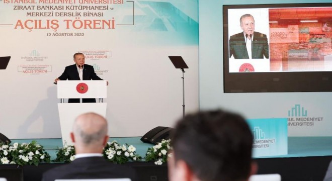 Rektörü ve hocaları, "Üniversite medeniyettir" ifadesini hayata geçirmek amacıyla samimiyetle çalıştıkları için tebrik ettiğini söyleyen Cumhurbaşkanı Erdoğan, "İnşallah yeni kayıt dönemiyle beraber 15 bini bulacak öğrencileriyle üniversitemiz, ülkemizin en seçkin yükseköğretim kurumları arasındaki yerini daha da güçlendirecektir. Bugün İstanbul Medeniyet Üniversitemize, marka değerinin önemli katkı sağlayacağına inandığım yeni bir eseri daha öğrencilerimizin ve hocalarımızın hizmetine sunmak için buradayız. Evet, Ziraat Bankamızın desteğiyle tamamlanan kütüphanemizin, merkezi derslik binasının üniversitemize, şehrimize ve ülkemize hayırlı olmasını diliyorum" dedi.