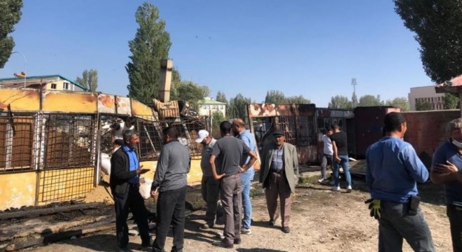 Pasinler ilçesinde 8 kişiye ait olan 12 dükkanda çıkan yangın itfaiyenin müdahalesiyle söndürüldü.