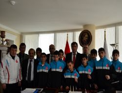 ERZURUM (İHA) - Erzurumlu boksörlerler kafile başkanı A.Cemil Kuzey nezaretinde Gürcistan’a gidecek. Haziran ayında Gürcistan’nın Khobi kentinin takımı ikili müsabakalar çerçevesinde Erzurum’a gelmişti. Şimdi de Erzurum Gençlikspor Kulübü’nün boksörleri rövanş için Gürcistan’a gidecek. Kafile başkanlığını A.Cemil Kuzey’in yaptığı kafilede idareci olarak Yusuf Karaca, Antrenör Mustafa Kalkan ile 12 sporcu bulunuyor. Gençlikspor Boks Kafilesi Gürcistan yolculuğu öncesinde Gençlik Hizmetleri ve Spor İl Müdürü Fatih Çintimar’ı ziyaret etti. Çintimar, ikili müsabakalar kapsamında Gürcistan’a gidecek olan minik boksörlere başarı dileğinde bulunurken, kendilerinden sportmence mücadele ederek, Erzurumluya yakışır bir şekilde Türkiye’yi temsil etmeleri için öğütte bulundu. Çintimar, boksörlerden şampiyonluk beklediğini de kendilerine illetti. Kafile Başkanı A.Cemil Kuzey, “İkili masabakalarda tecrübe kazanmak için Gençlikspor olarak Gürcistan’a gidiyoruz. İnanıyorum ki, sporcularımız tüm madalyaları da toplayacak”dedi.