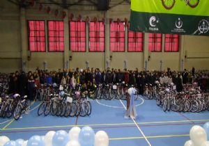 Erzurum Polis Meslek Yüksek Okulu spor salonunda yapılan bisiklet teslim törenine Erzurum Halk Sağlığı Müdürü Prof. Dr. Serhat Vançelik, ilçe milli eğitim müdürleri ve öğrenciler katıldı.
