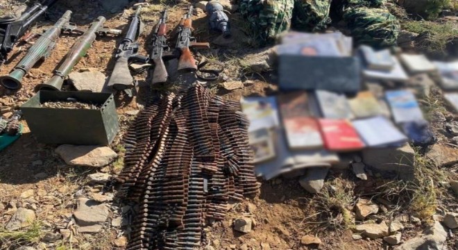 Açıklamaya göre, mağarada yapılan arama tarama faaliyetinde; 2 adet Zagros keskin nişancı tüfeği, 2 adet AK-47 piyade tüfeği, 2 adet 7.62 mm PKMS makineli tüfek, 2 adet RPG-7 roketatar, 1 adet Doçka makineli tüfek, 1 adet M-16 piyade tüfeği, 35 adet el bombası, 3 adet RPG-7 roketatar mühimmatı, 1 adet termal kamera, 1 adet Laptop bilgisayar, keskin nişancı kıyafeti ve örgütsel doküman ele geçirildi.