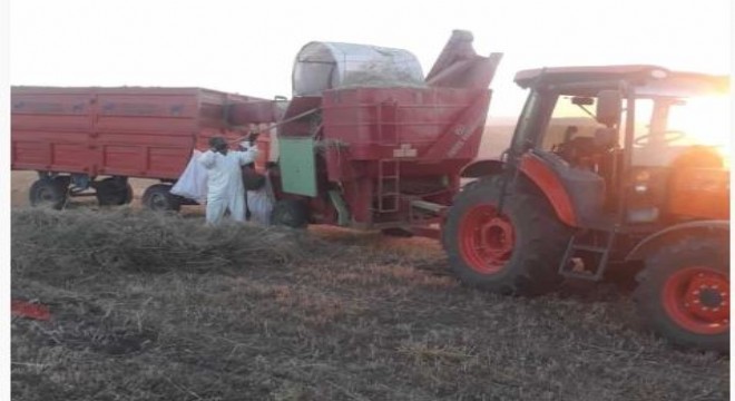 Tekman ilçesinde çiftçiler hayvanları için kışlık saman ve yem için gece gündüz çalışıyorlar.