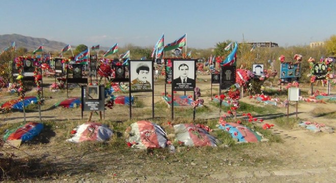 Hocalı şehitlerinin mezarlarının üzerine örtülen Azerbaycan bayrakları ile mezarların başlarında bulunan Türk ve Azerbaycan bayrakları 2 devlet, 1 millet dayanışmasını bir kez daha gözler önüne serdi.
