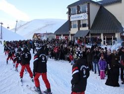 ERZURUM (İHA) - Erzurum merkez Yakutiye Belediyesi’nce Palandöken Kayak Merkezi’nde düzenlenen kayak kursuna katılan 360 öğrenciye düzenlenen törenle sertifikaları verildi. Sertifika töreni sonrasında dağıtılan köfte ekmeklerden almaya çalışan öğrenci ve aileleri izdihama neden oldu.