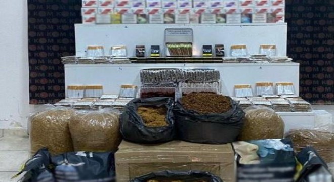 KOM ekiplerince düzenlenen operasyonda yapılan aramada, 61 bin 400 boş makaron, 18 bin 300 doldurulmuş makaron, 39 kilo 600 gram kıyılmış tütün, 32 kilo 755 gram nargile tütünü, 90 bandrol ve 18 puro ele geçirilerek muhafaza altına alındı.