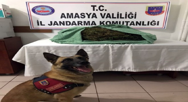 Amasya’da jandarmanın durdurduğu minibüste arama yapan narkotik dedektör köpeği ‘Atak’ içinde 9 kilo uyuşturucu olan bohçanın yakalanmasını sağladı.