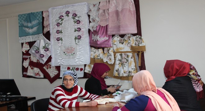 ADEM kurslarının dezavantajlı ve yoksul kadınlara yönelik olduğunu belirten Kaymakam Helvacı, Merkezin Kaymakamlık Sosyal Yardımlaşma ve Dayanışma Vakfı bütçesiyle geliştirildiğinin de altını çizdi. Helvacı, “Kurslarımız, ilimiz sınırları içerisinde bulunan dezavantajlı ve yoksul kadınlarına yöneliktir. Topluma entegrasyonunu, kadınlarımızın sosyal ve ekonomik gelişmelerine katkıda bulunmak ve aktif iş gücüne katılımlarını sağlamak amacıyla Aile ve Sosyal Politikalar Bakanlığımız projeleri ile hayata geçirilmiştir. Söz konusu projemiz ile kadınlar ve genç kızlarımıza yönelik mesleki eğitim kursları, gezi, eğitim seminerleri, sergi, fuar gibi faaliyetler gerçekleştirilmektedir. Aile Destek Merkezimizde kadınlar aşçılık, pasta yapımı ve sunumu, ev tekstil ürünleri, ahşap hediyelik eşya süsleme ve saç bakım-yapımı gibi el işlerinde hem eğitim alıyorlar hem de aldıkları eğitim sonucunda ortaya çıkanı satarak para kazanabiliyorlar. Ayrıca buradaki kurslara katıldıkları her gün içinde 20 TL harçlık alıyorlar. Burada hediyelik eşya, tekstil gibi ürünleri satmaları için Kaymakamlık olarak Pazar imkânı sağlıyoruz. Kadınlarımızın katılacakları faaliyetlerde çocuklarından ayrılmamaları ve onları yalnız bırakmamaları adına aile destek merkezimizde çocuk oyun alanı yer almakta olup, merkezimiz bahçesinde çocuk oyun parkı da mevcuttur.” dedi.