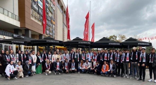 Erzurum AK Parti Gençlik Kolları, Erzurum'daki Starbucks şubesinde Filistin atkılarıyla yarım saatlik yer kapatma protestosu yaptı.
