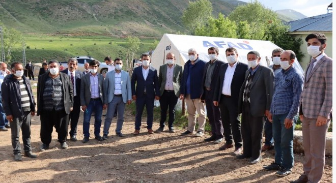 Beraberinde Ak Parti İl Başkanı Mehmet Emin Öz, İlçe Başkanı Muhammed Emin Işık ve meclis üyeleri ile birlikte depremde hasar oluşan mahalle ve mezralarda bir dizi temaslarda bulundu.