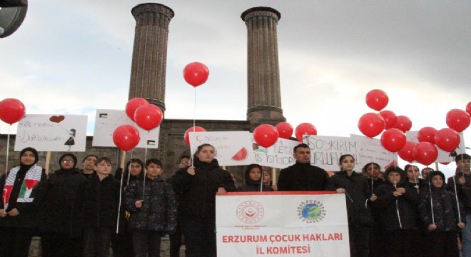 Etkinlikte, Erzurum Çocuk Hakları İl Komitesi üyesi bir çocuk tarafından hazırlanan şu bildiri okundu: “Tam 35 yıl önce imzalanan ve çocukların yaşam hakkını güvence altına alan Birleşmiş Milletler Çocuk Haklarına Dair Sözleşme’nin yıldönümü. Özellikle savaş ve yoksulluğun baskın olduğu coğrafyalarda çocukları korumak ve yaşam şartlarını iyileştirmek için hazırlanan sözleşme, dünya çocuklarının temel haklarını güvence altına almayı hedefliyor. Dünya üzerinde Birleşmiş Milletler Çocuk Haklarına Dair Sözleşme’yi 196 ülke imzalamış. Dünyada bu kadar çok ülkenin toplanarak imza attığı başka bir sözleşme yok. Bizler de bu sözleşmeye dayanarak tüm insanlığa sesleniyoruz: Filistin’de soykırımı durdurun! Çocukları koruyun! Çocuklar; savaşın, şiddetin, ayrımcılığın ve zulümlerin hedefi olamaz. Dünyanın hiçbir yerinde çocukların yaşam hakkı gasp edilemez, masum hayatlar yok edilemez. Çocukların barış, güvenlik ve sevgi içinde büyüyebileceği bir dünyayı inşa etmek için biz buradayız"