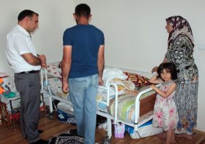Ağrı Aile ve Sosyal Politikalar (ASP) İl Müdürü Veysel Topkaya, çocuğu olmadığı gerekçesiyle eşi tarafından şiddet gören, gördüğü şiddet sonrası intihar girişiminde bulunarak beynine oksijen gitmediğinden dolayı felç geçiren Müjde Kara ve ailesini ziyaret etti.