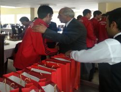 Süper Lige yükselen Atatürk Üniversitesi Erkek Hentbol Takımına Üniversite Rektör Yardımcısı ve Kültürel Faaliyetler Yürütme Kurulu Başkanı Prof Dr. Samih Diyarbakır çeşitli hediyeler verdi.