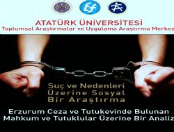 Doç. Dr. Yıldız Akpolat tarafından yönetilen Erzurum Ceza ve tutukevinde bulunan mahkum ve tutuklular üzerine bir analizi içeren proje çalışmasının nicel veri sunumu Yasemin Aslantürk, nitel veri sunumu Ebru Kurdal, Pınar Laloğlu ve Melek Ertenyü tarafından yapılacak. Atatürk Üniversitesi Toplumsal Araştırmalar ve Uygulama araştırma Merkezi tarafından gerçekleştirilen proje çalışması bugün saat 10:00-12:00 saatleri arasında ATÜÜNİ Kültür Merkezi’nde değerlendirilecek.
