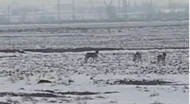 Soğuk hava şartlarının etkisini artırmasıyla birlikte dağlık alanlarda yiyecek bulmakta zorlanan kurtlar, Iğdır Ovası’na indi.