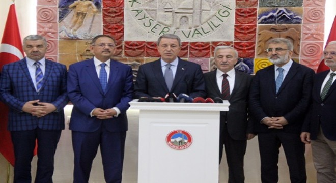 Milli Savunma Bakanı Hulusi Akar, Kayseri Valiliğini ziyaret etti. Bakan Akar, burada AK Parti Milletvekilleri Mehmet Özhaseki, Taner Yıldız, Mustafa Elitaş, İsmail Tamer, İsmail Emrah Karayel ve Kayseri Valisi Süleyman Kamçı tarafından karşılandı. Bakan Akar ziyaret sırasında yaptığı açıklamada, “Yeni sistem çerçevesinde Cumhurbaşkanımız tarafından Milli Savunma Bakanlığı görevini verdiler. Bu ülkemizin, milletimizin birliği ve beraberliği için, asil milletimizin egemenliği ve bağımsızlığı için elimizden gelen tempoda aynı azim ve kararlılıkla çalışmalarımızı sürdüreceğiz. Görevi aldıktan sonra Milli Savunma Bakanlığı olarak, Sayın Genelkurmay Başkanımız ve Sayın Kara Kuvvetleri Komutanımızın görevlerini kutlamak için bildiğiniz gibi Hakkari Dağbaşı karakoluna gittik. Askerlerimiz, subay ve astsubaylarımız ile birlikte evlerde eşlerimiz tarafından hazırlanan keklerle kutlama töreni yaptık. Gerçekten çok duygulandık. Arkadaşlarımızın büyük bir fedakarlık içinde kendilerine verilen görevi büyük bir ciddiyetle yaptıklarını gördük. Zor şartlarda gerçekten büyük bir aşk ve heyecanla, azimle vatan görevini yerine getirdiklerini gördük. Yurt içinde ve yurt dışında terörle mücadelede büyük başarılar sağlandı. Çok şükür yurdumuzun, sınırlarımızın ötesine çıkarıldılar ve sınır ötesinde de onların peşindeyiz. Bizim amacımız ve gayretimiz ülkemizin birlik ve beraberliği, huzur içinde yaşaması. Bu çerçevede komşu ülkelerin de siyasi ve toprak bütünlüğüne saygı göstererek, aynı zamanda ülkemizin birlik ve bütünlüğünü korumak çerçevesinde gerekli faaliyetlerimizi ve operasyonlarımızı yaptık ve yapmaya devam edeceğiz. En son terörist etkisiz hale getirilene kadar mücadelemiz devam edecek. Yeni görevlerin ülkemize hayırlı olmasını diliyorum” dedi.