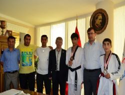 Erzurumlu Taekwondocular, Samsun’dan iki madala ile dönmenin mutluluğunu yaşadı. Türkiye Taekwondo Federasyonu tarafından düzenlenen ve 25-30 Ağustos 2012 tarihleri arasında Samsun’da yapılan Yıldızlar Türkiye Taekwondo şampiyonasına BEAH Sağlıkspor Antrenörü ve Taekwondo İl Temsilcisi Kemal Yıldıran ile Antrenörler Arif Budak ve Hakan Şengönül yönetiminde 11 sporcu ile katılan Erzurum iki madalya çıkarmayı başarmıştı. 45 kiloda Enes Kalaycı ikinci olarak gümüş madalya kazanırken, 57 kiloda Mustafa Batuhan Yardımcı ise üçüncü olarak bronz madalya elde etmişti. YILDIRAN: BİZE DESTEK OLAN HERKESE TEŞEKKÜR EDİYORUZ