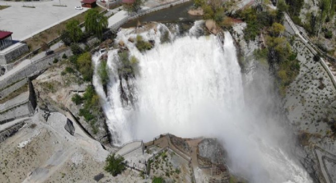 Yılın dört mevsimi binlerce turisti ağırlayan doğa harikası şelale drone ile havadan görüntülendi. 1700'lü yılların ortalarında bugünkü Balıklı köyü batısında yer alan bir dağın heyelan sonucu Tortum Çayı'nın önünü kapatmasıyla oluşan Tortum Şelalesi, 22 metrelik genişliğe sahip.