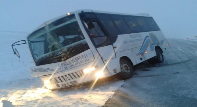 Aşkale’den Erzurum’a gelen halk otobüsü TIR’ın aniden kayması sonucu son anda direksiyon hakimiyetini kaybederek yoldan çıktı. Kazada otobüste maddi hasan oluşurken herhangi bir yaralanma yaşanmaması sevindirdi.