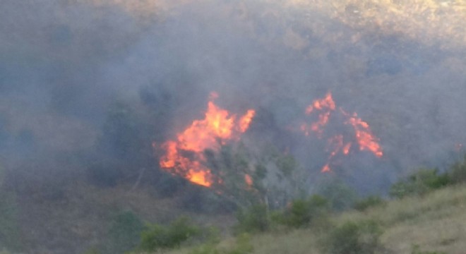 Erzurum Pazaryolu ilçesinde bir arazide çıkan yangın ormana sıçradı.