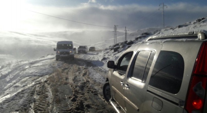 Kar ve tipinin etkili olduğu yüksek kesimlerde 20’e yakın araç yolda mahsur kaldı