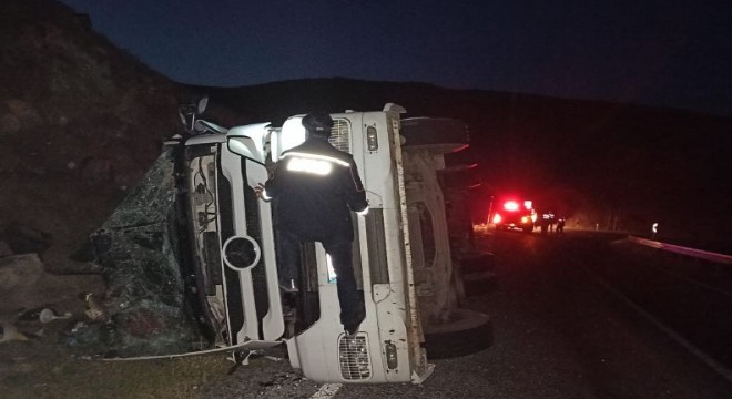 Bingöl yolunda kamyon devrildi: 2 yaralı