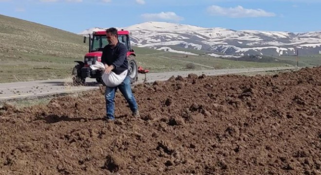 Aşkale ilçesinde karların erimesi ve havaların normale dönmesi ile çiftçiler tarlalarına tohum ekti.