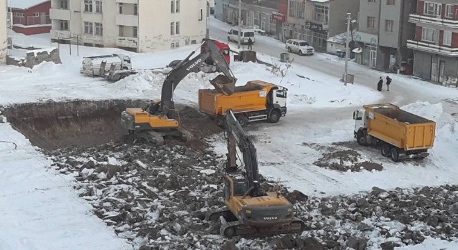 Aşkale ilçe merkezinde yapılması planlanan Nene Hatun Kız Teknik Lisesi temel atma çalışmaları eksi 30 dereceye rağmen başladı