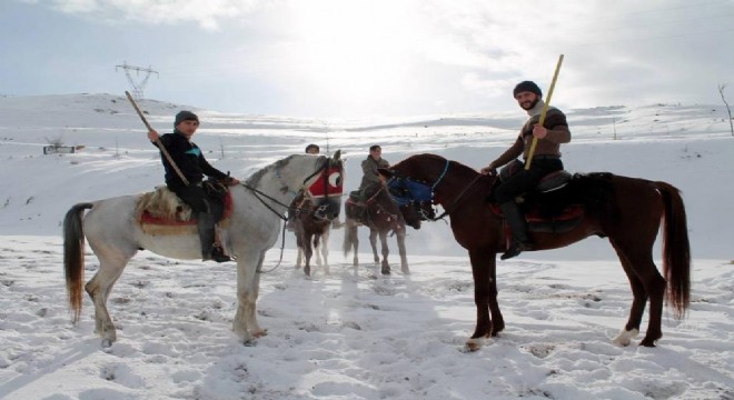 Ciritçiler, cirit müsabakaları için atlarını kar üzerinde dörtnala koşturarak ata sporu olan ciridi yaşatmaya gayret gösteriyorlar.