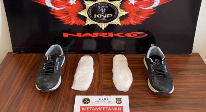 Kars’ta İranlı uyuşturucu tacirinin ayakkabı tabanına sakladığı uyuşturucu polise takıldı.